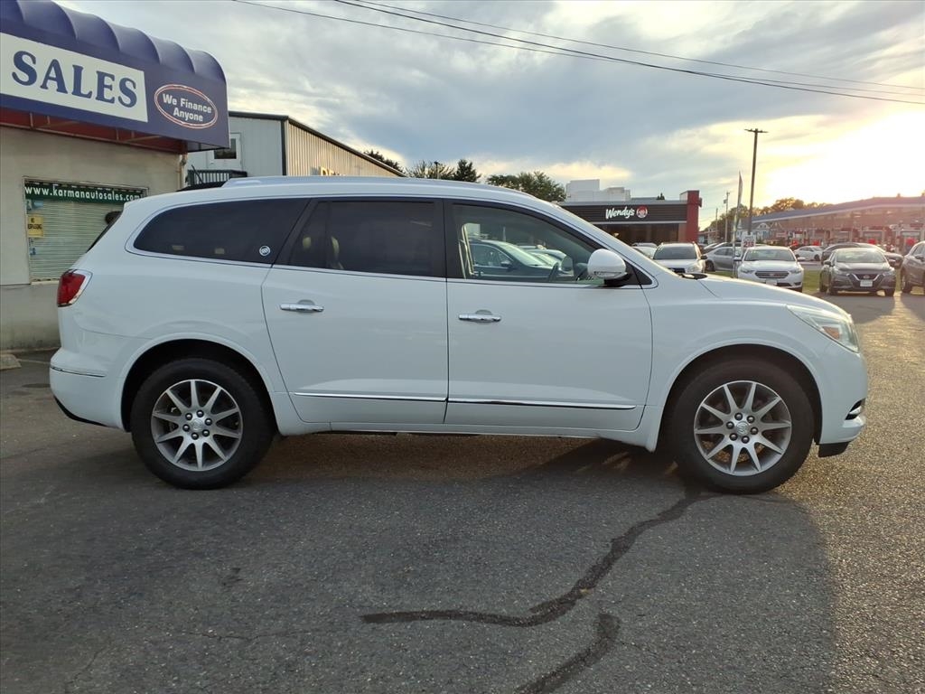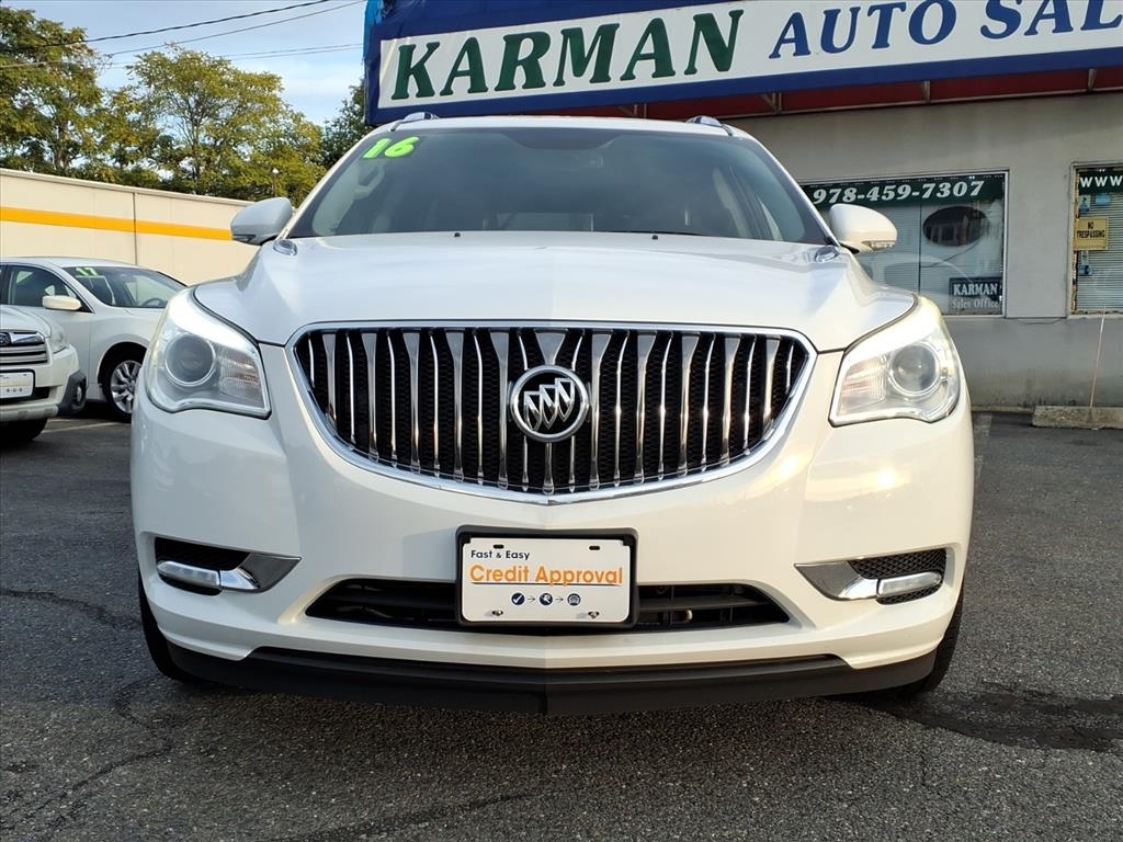 GUARANTEED CREDIT APPROVAL, A PLUS BBB DEALER, Stunning in Summit White, our 2016 Buick Enclave AWD Leather Group delivers a first-class ride. Powered by a 3.6 Liter V6 that provides 288hp paired with a 6 Speed Automatic transmission to provide impressive acceleration. Our All Wheel Drive SUV has an innovative suspension to minimize impact and noise so you can peacefully enjoy nearly 22mpg on the highway, complemented by 19-inch wheels, automatic xenon headlights, rear privacy glass, and a power liftgate. You'll appreciate our Enclave Leather Group as you settle into your heated leather seating, find your way with our full-navigation system, turn up your favorite tunes on the impressive sound system with available satellite radio, and grip the heated steering wheel. You'll also feel perpetually indulged with features such as a remote starter, heated mirrors, tri-zone automatic climate control, and an auto-dimming rearview mirror. Take connectivity to the next level courtesy of OnStar telematics with available WiFi capability, Bluetooth?, IntelliLink with voice control, and a prominent touchscreen display. Drive confidently, knowing our Buick has received top safety scores with blind-spot warning, ABS, stability/traction control, airbags, a rearview camera, and OnStar assistance. Abundant in space, performance, and style, this Enclave Leather Group is a superb choice for your active lifestyle. Save this Page and Call for Availability. We Know You Will Enjoy Your Test Drive Towards Ownership!