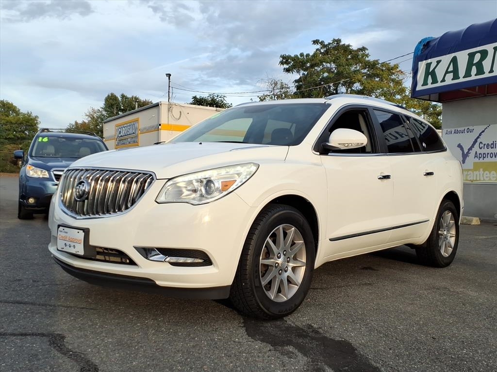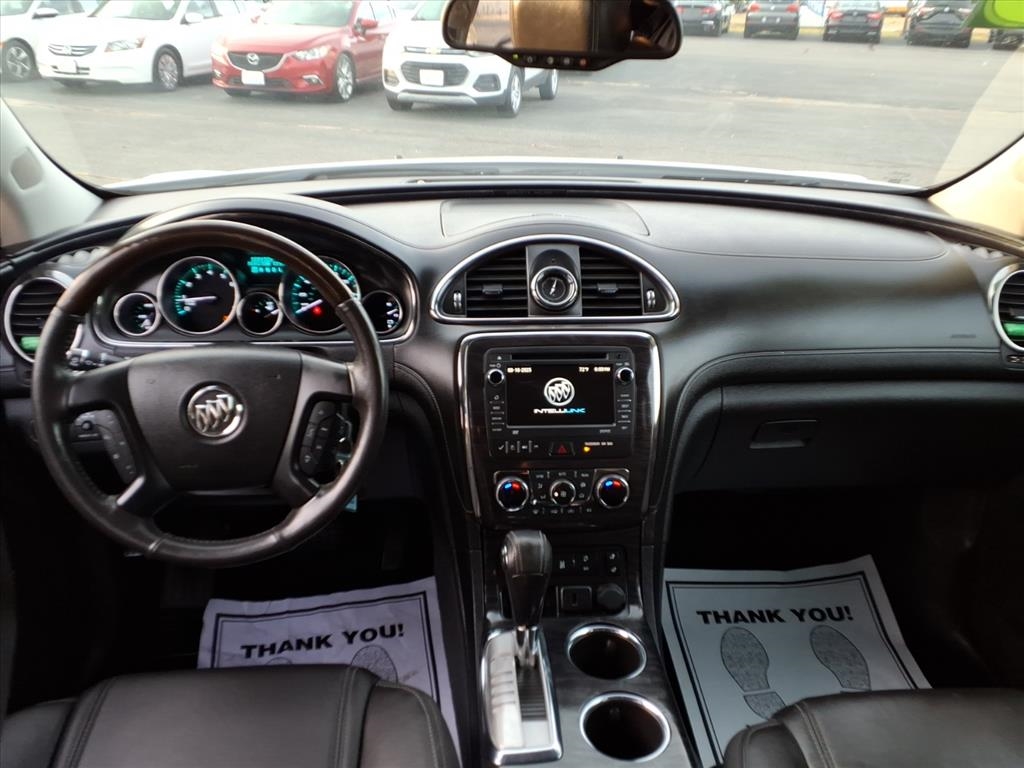 GUARANTEED CREDIT APPROVAL, A PLUS BBB DEALER, Stunning in Summit White, our 2016 Buick Enclave AWD Leather Group delivers a first-class ride. Powered by a 3.6 Liter V6 that provides 288hp paired with a 6 Speed Automatic transmission to provide impressive acceleration. Our All Wheel Drive SUV has an innovative suspension to minimize impact and noise so you can peacefully enjoy nearly 22mpg on the highway, complemented by 19-inch wheels, automatic xenon headlights, rear privacy glass, and a power liftgate. You'll appreciate our Enclave Leather Group as you settle into your heated leather seating, find your way with our full-navigation system, turn up your favorite tunes on the impressive sound system with available satellite radio, and grip the heated steering wheel. You'll also feel perpetually indulged with features such as a remote starter, heated mirrors, tri-zone automatic climate control, and an auto-dimming rearview mirror. Take connectivity to the next level courtesy of OnStar telematics with available WiFi capability, Bluetooth?, IntelliLink with voice control, and a prominent touchscreen display. Drive confidently, knowing our Buick has received top safety scores with blind-spot warning, ABS, stability/traction control, airbags, a rearview camera, and OnStar assistance. Abundant in space, performance, and style, this Enclave Leather Group is a superb choice for your active lifestyle. Save this Page and Call for Availability. We Know You Will Enjoy Your Test Drive Towards Ownership!