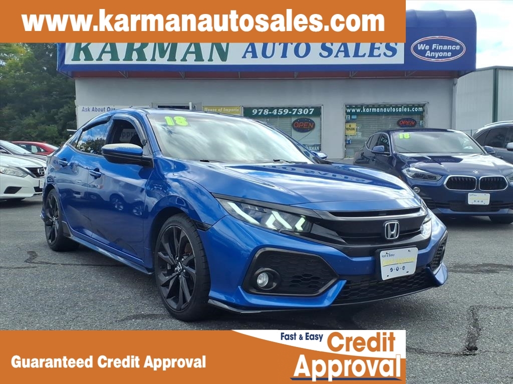 GUARANTEED CREDIT APPRONAL, A PLUS BBB DEALER, Agile and enthusiastic is our 2018 Honda Civic Sport Hatchback in Aegean Blue Metallic! Fueled by a TurboCharged 1.5 Liter 4 Cylinder that generates 174hp connected to a paddle-shifted CVT for fantastic power. Prepare to smile each time you get behind the wheel of our Front Wheel Drive Hatchback that rewards you with nearly 36mpg on the highway. Check out the expressive and angular lines of this Sport hatchback; it lets you stand out from the crowd and features great-looking alloy wheels, dual exhaust, fog lights, and an under-body spoiler kit. The sleek and spacious Sport interior is ready to serve you well with a multi-angle rearview camera, power accessories, textured aluminum pedals, a leather-wrapped steering wheel, and illuminated steering wheel-mounted controls. You'll stay on track and safely connected with Bluetooth?, a USB audio interface, and a color LCD screen. In typical Honda fashion, our Civic Sport makes safety a priority. Stability control, ABS, adaptive cruise control, airbags, and other carefully crafted safety features keep you out of harm's way as you take in this joyride. You deserve sporty styling, versatile practicality, and a brilliant drive, so get behind the wheel of this Civic Sport Hatchback and reward yourself today. Save this Page and Call for Availability. We Know You Will Enjoy Your Test Drive Towards Ownership!